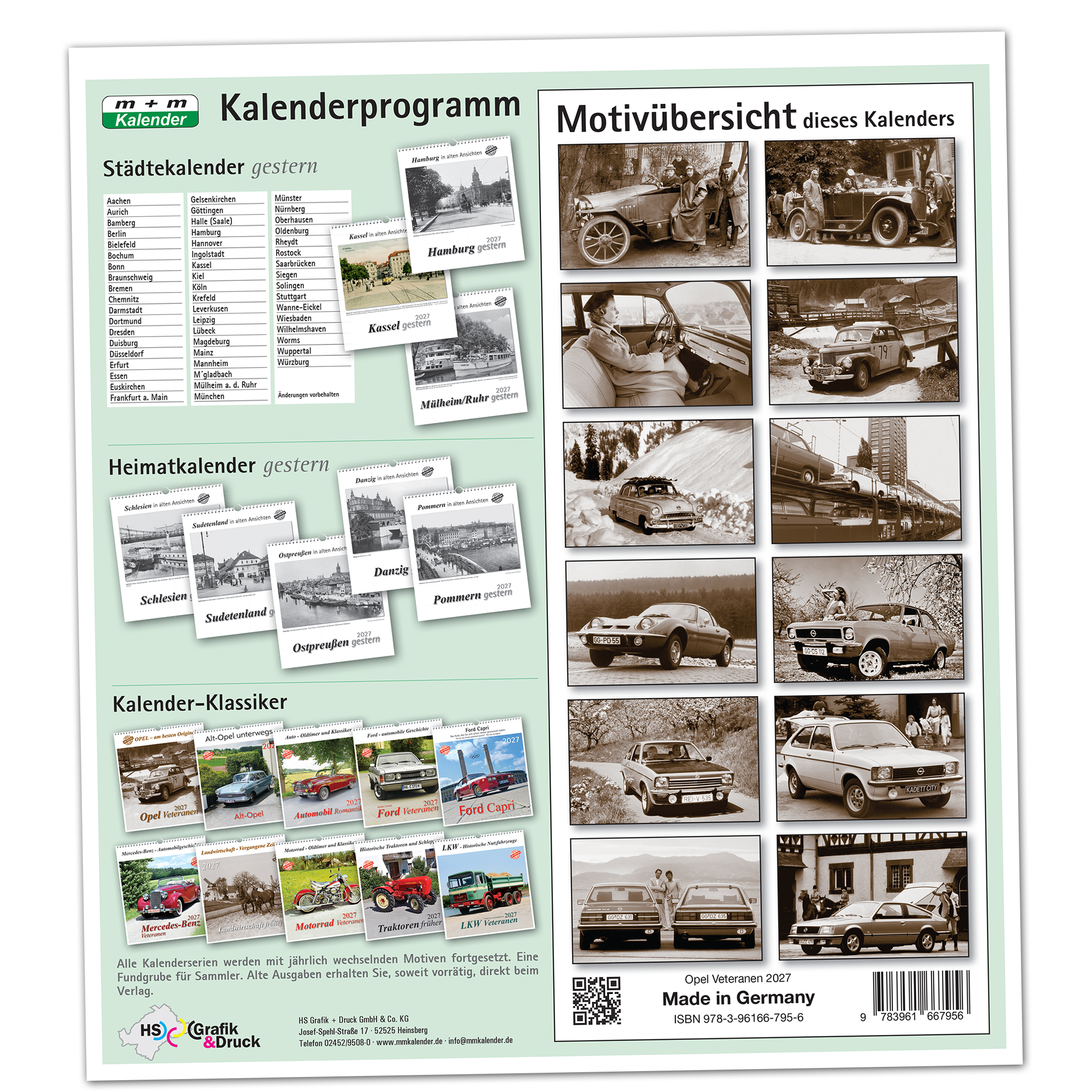 13 eindrucksvolle Aufnahmen in Sepia-Qualität zeigen zum Thema „Opel – am besten Original“ einen Querschnitt von Opel-Modellen.
